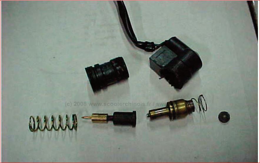 (au niveau supérieur de la cuve: arrivée d'essence, les deux autres reprises sur le coté n'ont pas de fonction directement sur le carburateur, ils servent de repiquage...)