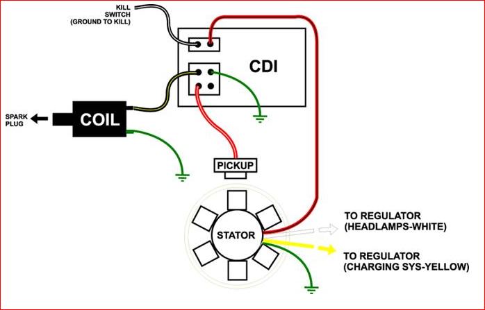 Ce schémas me plait bien, par contre je récupère le quad tout à l'heure , mais le CDI est un boitier noir en plastic, avec une seule prise, je pense que je ne vais pas avoir le choix de passer par du bricolage, car ce quad n'a pas été vendu par lifan france car en 2007 seul des importateurs ont fait rentrer ces quads, et bien sur sans service après vente, et lifan france créé en 2009 à Ingres prés de Orléans semble être en difficulté et est au abonnées absents , affaire à suivre