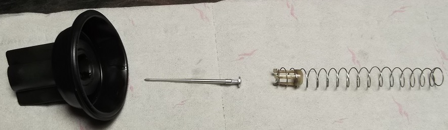 Ce n'est apparent pas ton cas et si tu confirmes que tout est bien présent et monté dans l'ordre et que le boisseau descend rapidement au relâchement des gazs et que l'aiguille n'est pas abimée et qu'elle descend bien jusqu'au fond du puits d'aiguille pour fermer l'arrivée d'essence par le gicleur principal ..............Alors tu peux dans ce cas baisser petit à petit ....le niveau de cuve :sm6: