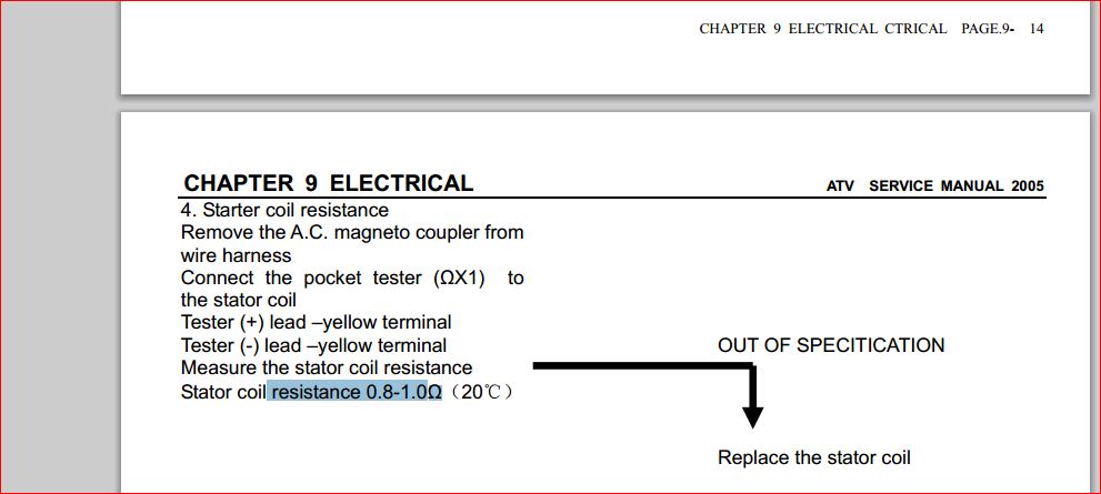 pour la resistance du starter il fait marqué 14 ohms mais j'en es mesuré 16 +-