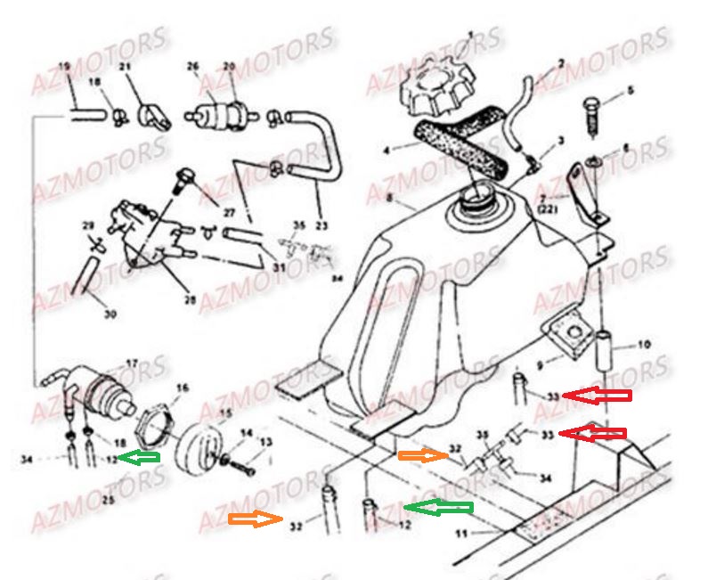 La durite Rep 12 est celle de la réserve et elle doit être reliée directement au robinet d'arrêt ( Voir repère sur le schéma ci-joint )