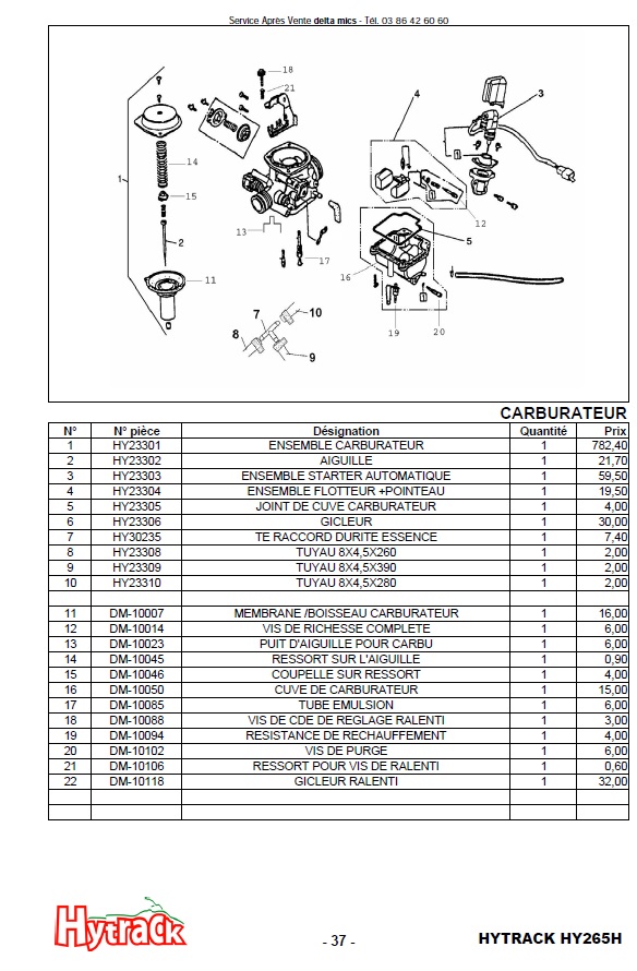 Le prix de la "seule" pièce Repère 15 était, effectivement, de 4 eurosau tarif catalogue HYTRACK (2007)
