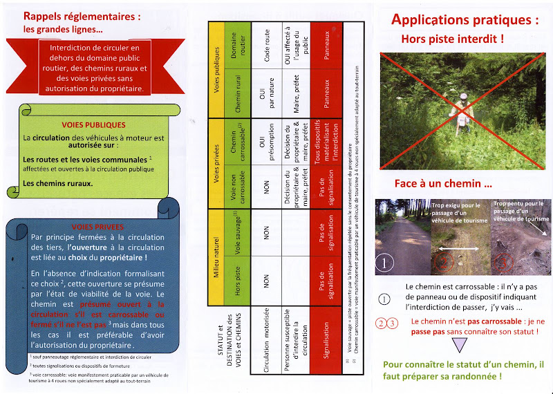 Pour des raisons pratique tout ce qui est dit ci dessous ne concerne que la pratique de la randonnée motorisée. Les cavaliers, cyclistes et piétons ne sont pas concernés.