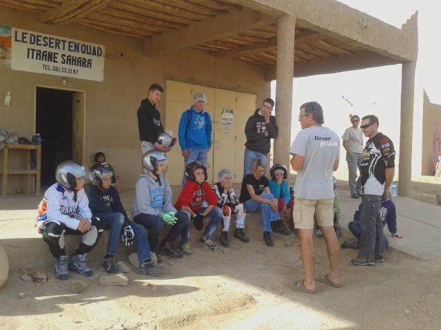 Après que cette mission astreignante ait été accomplie, nos jeunes aventuriers ont découvert le GPS dans le désert ! Ah ben oui Tom Tom ce n’est pas pareil ! Puis ils ont eu le droit à une mise en situation avec une liaison autour de l'auberge, où ils avaient à chercher des balises au GPS. Enfin TP en quad avec une randonnée au GPS, direction les dunes d'Oussina, à tour de rôle chacun ferra le guide pour une mise en application des tracés réalisés par les jeunes apprentis.