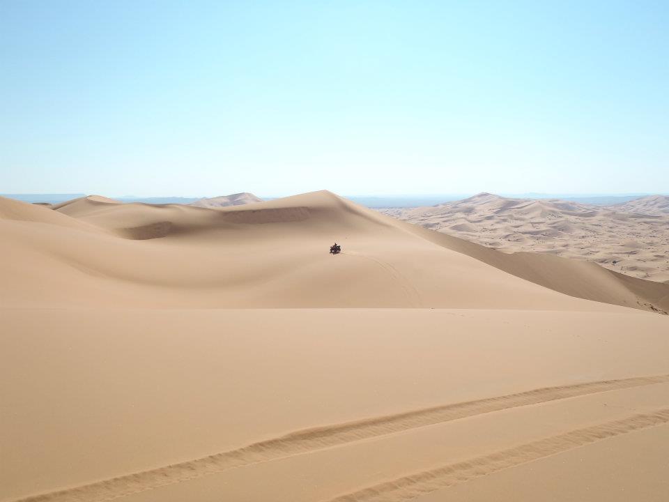 Un mot pour qualifier les dunes traversées cet après midi: GEANTES. Logique puisqu'il s'enfonce dans l'arrière pays entre Béga et Merzouga.