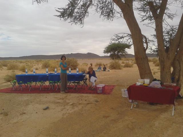 Pique nique au milieu de nul part dans l'oued entre Bega et les dunes de Chergui