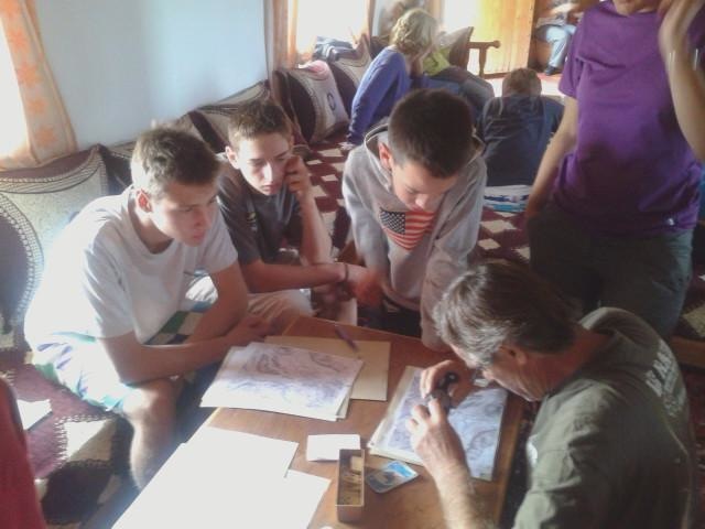 Cette journée avait commencé par un cours magistral sur cartes (faire sa trace-suivre une trace, trouver les balises…. Cette opération n'a pas été la plus simple pour tout le monde puisqu'elle demande patience et précision. Le départ en rando pour une mise en pratique a ensuite été donné (En même temps on est dans le désert pour ça!). Un pique nique au milieu de nul part est organisé, encore un moment inoubliable qui restera gravé dans leurs mémoires!