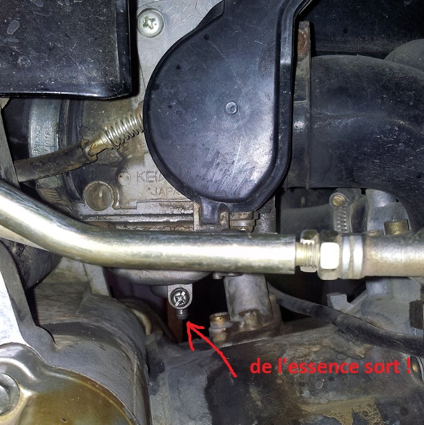 En fonctionnement NORMAL, il ne doit RIEN couler par le conduit de la vis de purge du carburateur.