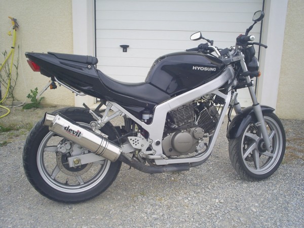 Aujourd'hui elle a 23000Km mais risque d'en avoir quelques centaines de plus lors de l'achat car je roule régulièrement avec. Avec un plein on fait facilement minimum 300Km. C'est une marque Coréenne qui fabrique en sous-traitance de Suzuki donc pas de problème niveau qualité surtout que le bloc moteur de cette 125 est également montez sur sa grande soeur de 250cc. Elle a un gros gabarit (celui de sa grosse soeur la 650cc ) rassurant est perso c'est ça qui m'a fait choisir (entre autre) cette marque y'a trois ans. Elle a de bon pneu très très rescents Michelin PilotRoad2 de 150/70ZR17 a l'arrière et 110/70ZR17 a l'avant donc on peut vraiment attaquer si besoin est. La batterie est neuve, le kit chaine bon, pneu OK, vidange a jours, chauffe respectée, ... enfin bref, y'a plus qu'a démarrer et profiter.