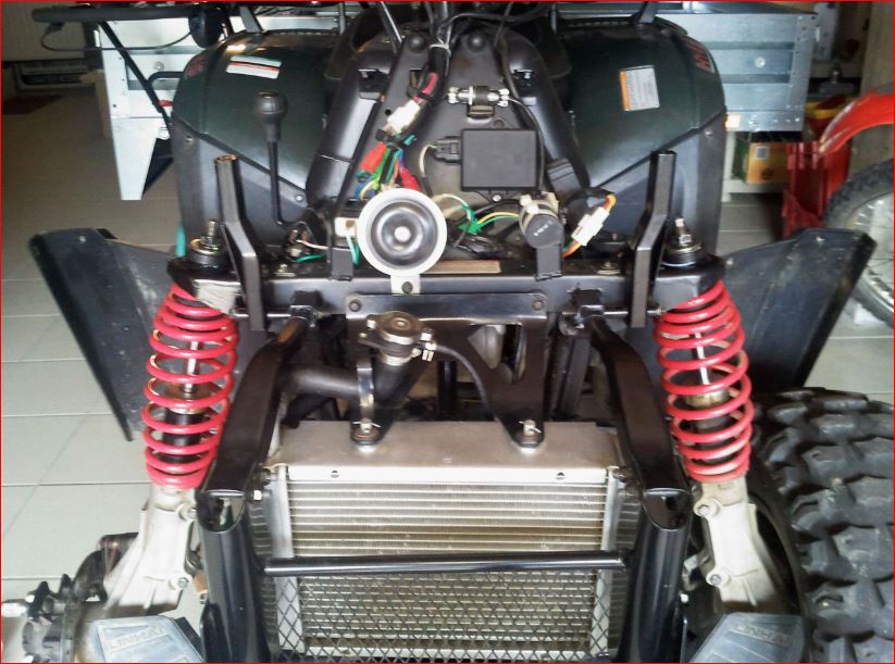 un peu de temps libre aujourd'hui je n'ai pu résister à mettre les mains dans le quad :P :P dépose demi train av droit,modif de la coupelle d'ammortisseur encore merci à barnabouille :P