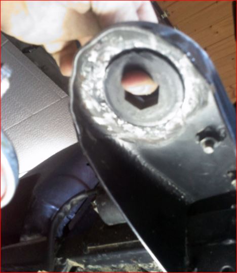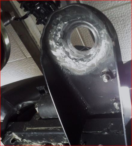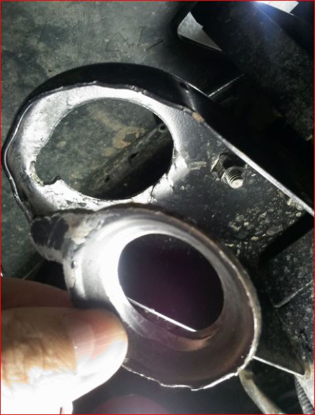 2 - Faire un chanfrein et vérifier que l'angle de la rondelle ne touche plus la tôle du support d'amortisseur et continuer pour avoir un peu de jeu.