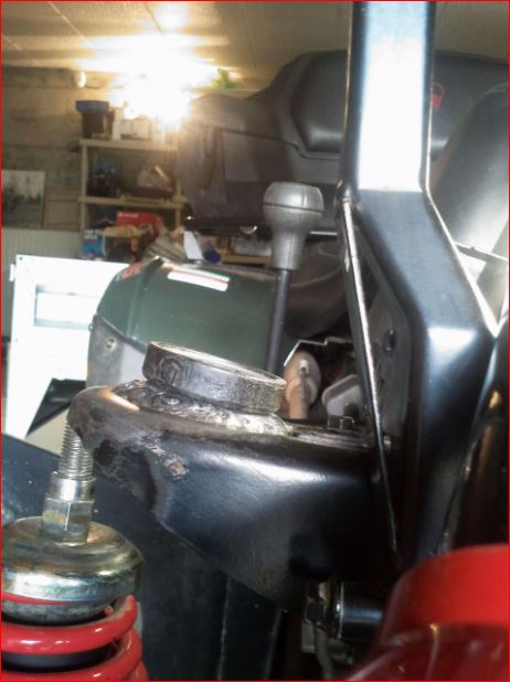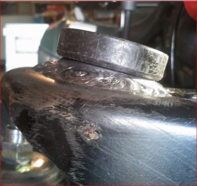 Cette modification évitera une casse du support amortisseur, provoquée par l'amorce de rupture crée par l'usure lente de la tôle, qui est en contact avec " l'angle " de la rondelle plastique supérieure ( Une casse assez rare effectivement, qui peut facilement être évitée )