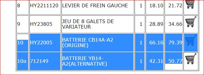 HY22005 BATTERIE CB14A-A2 (ORIGINE) 79.39 Euros