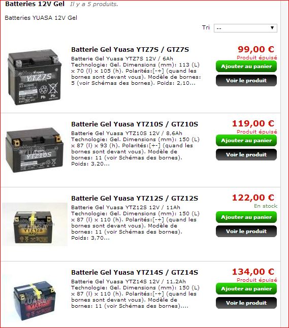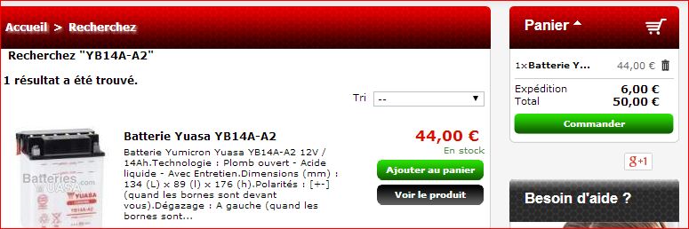 44€ TTC la YB14A-A2 chez Yuasa (1er fabricant mondial quand même)