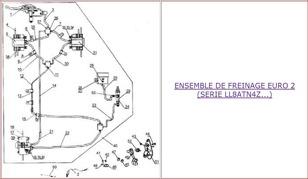 Suivant le schéma EURO 1 ( Freinage à la poignée, uniquement sur l'étrier arrière ).
