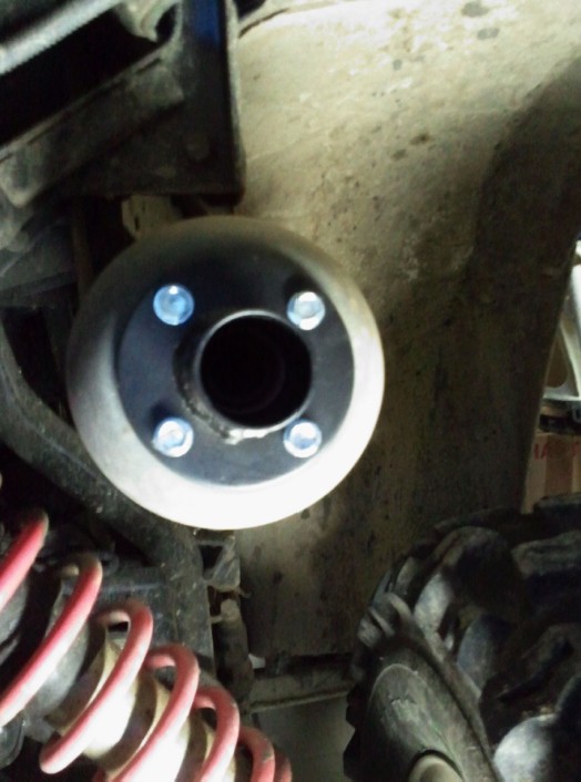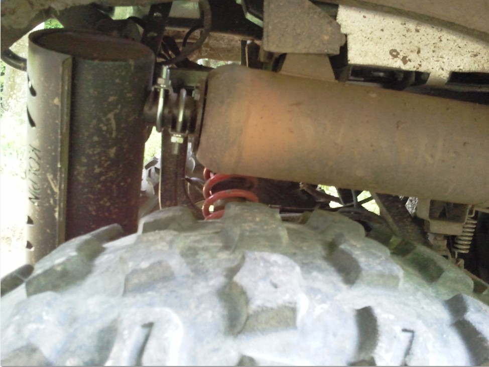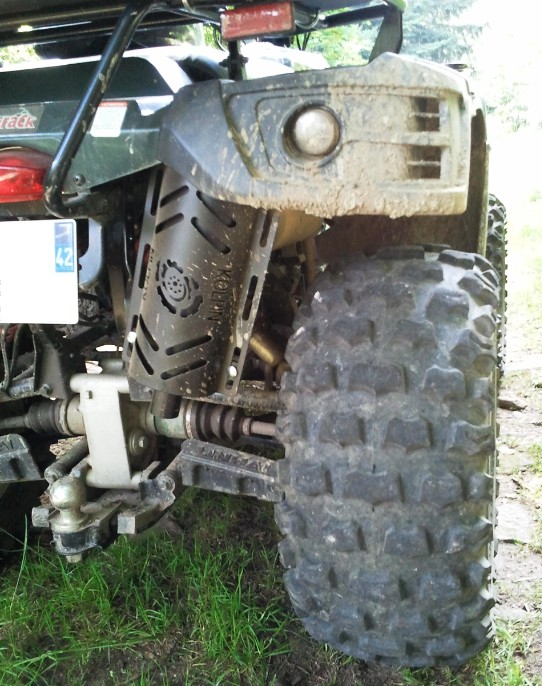 1- La distance mini est de 4,5 cm entre le pot additionnel KOLPIN et le pneu ( Pneu MAXXIS C9209 ALL TRACK 25x10-12).