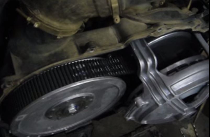 En effet le ralenti était trop haut. Ce qui faisait que la grande poulie (à gauche) tournait toujours quand je passais les vitesses. Je n'aurais pas su sans que barnabouille ne me le dise.