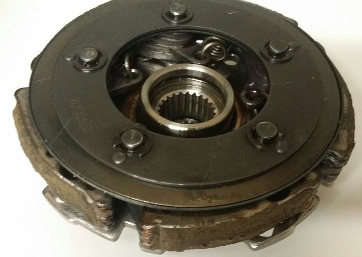 Aïe aïe aïe, que tu trouves de l'huile dans le bas de ton carter, c'est normal, ton embrayage est à bain d'huile. Mais à la vue de ta photo, ton embrayage est HS, enfin tu aurais pu ne changer que les mâchoires. Ma moitié te demande qu'est ce que tu traînes pour avoir mis tes mâchoires dans cet état ??? Car il y a 2 solutions, traction de charges lourdes ou gros problème de freinage.